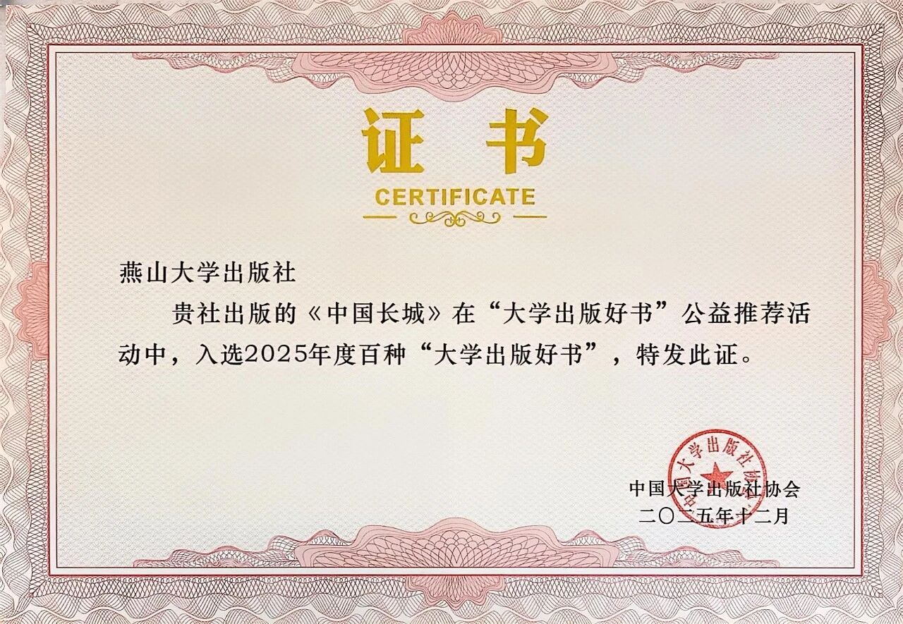 12月13日,中国大学出版社协会2025年年会在杭州举办。年会上发布了2025年度百种“大学出版好书”,燕山大学出版社出版的《中国长城》入选了主题出版类好书。